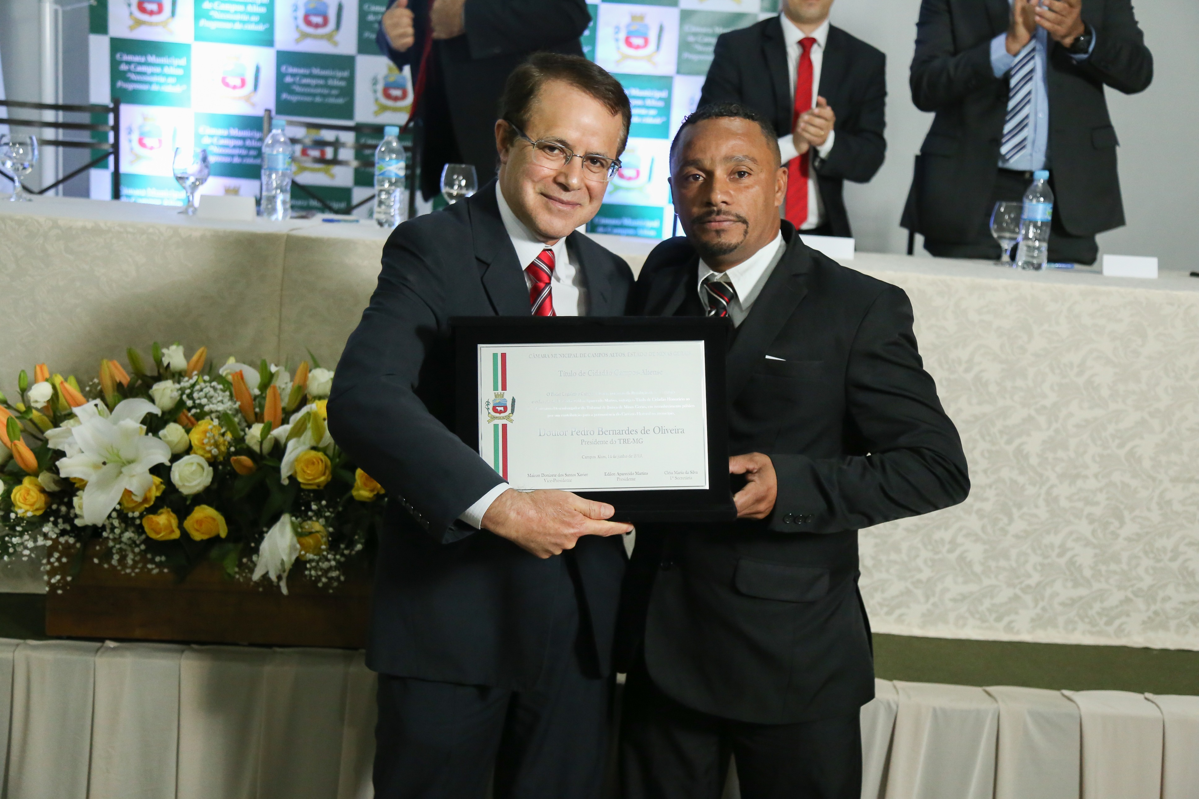 No dia 14 de junho de 2019, a Câmara Municipal realizou a cerimônia de outorga do Título de Cidadania Honorária ao Desembargador Dr. Pedro Bernardes de Oliveira. A homenagem aconteceu no Salão Dalva’s Buffet e foi prestigiada pela família do homenageado, sua esposa a senhora Regina Izabel Bengtsson Bernardes, sua filha Marília Bengtsson Bernarde, autoridades do TRE-MG; Prefeitos das cidades, de Uberaba, Pratinha, Córrego Danta, Tapiraí; Juízes, vereadores de diversas cidades, pelo Deputado Estadual Bosco, além das autoridades do município de Campos Altos: Presidente da Câmara Municipal, Vereador Lãozinho, Vereadores Frederico Nery, Verinho, José Adolar, Maiquinho, Jonnas; o Prefeito Paulo Almeida; Juiz Diretor do Fórum de Campos Altos Dr. Renan Bueno; 2º Sgto da PM Fabiano Peres; 1º Sgto do CBM/MG Luiz Carlos Costa; Dra. Alba Waléria representante da Subseção da OAB; Wladimir Camilo chefe do Cartório eleitoral; secretários municipais, dentre outros.